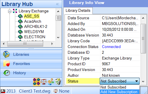 · From the Library Info window, click Status and select Add New Subscription or Extend License